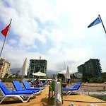 Offering an indoor swimming pool, the spacious 120 m^2 Konak Tower Sea View Apartment 47 is situated at a distance of 4.2 km from Kestel Municipality. Mahmutlar Sahil Public Beach is about 5 minutes' walk away, while Dimcay River is also at a distance of 4.8 km from the beachfront apartment.